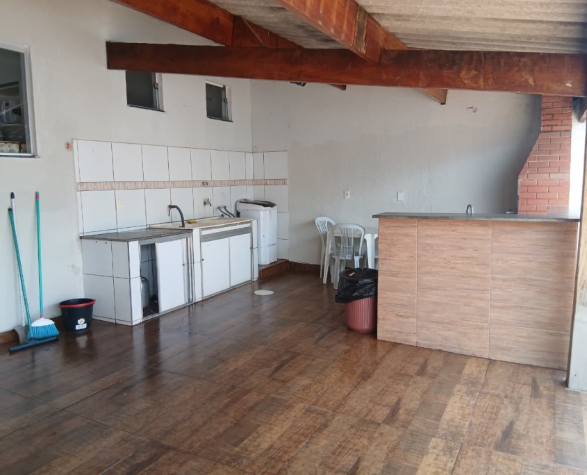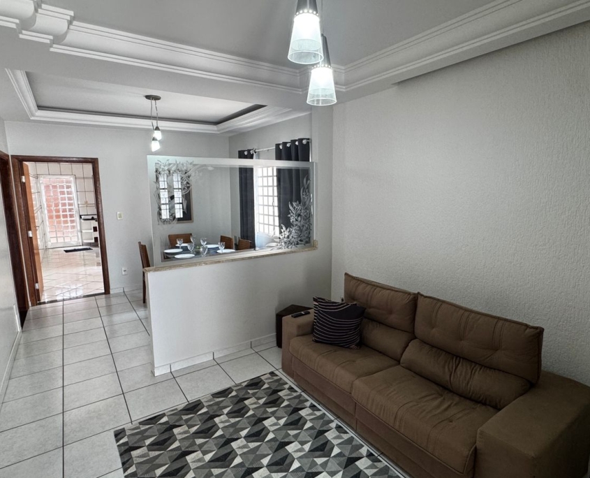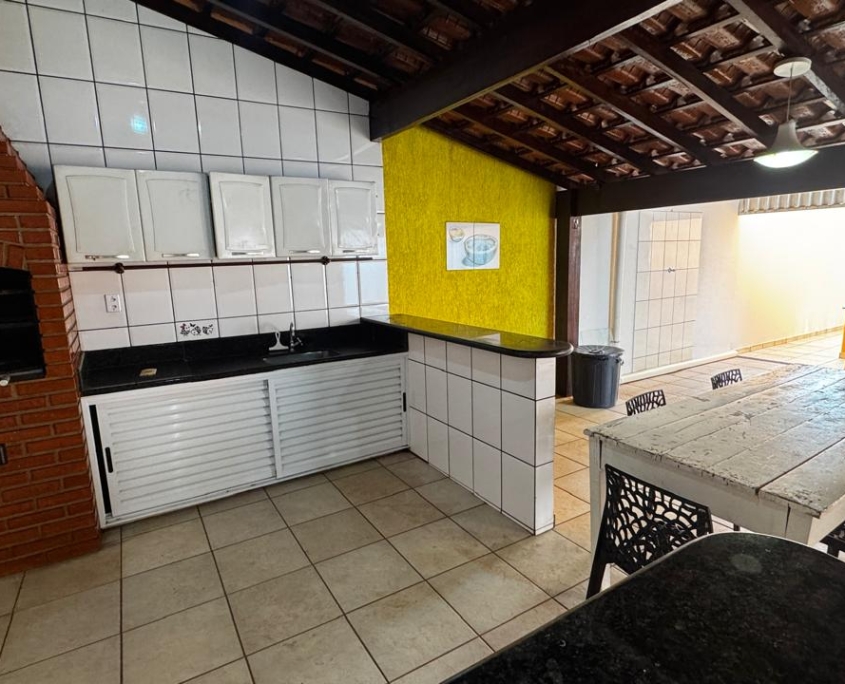Casa com 2 quartos sendo 1 suíte, sala de TV, sala de estar, cozinha conjugada estilo americana, 1 banheiro social, área de serviço com tanquinho, área gourmet com churrasqueira, garagem para 3 carros. Equipada com camas forradas, geladeira, fogão, utensílios de cozinha, ventiladores em todos os quartos e internet Wi-Fi. Acomoda até 7 pessoas.