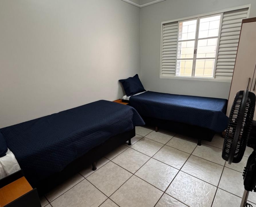 Casa com 2 quartos, sala de TV, 1 banheiro social e área de serviço com tanquinho. Equipada com camas forradas, geladeira, ventiladores em todos os quartos e internet Wi-Fi. Acomoda até 7 pessoas.