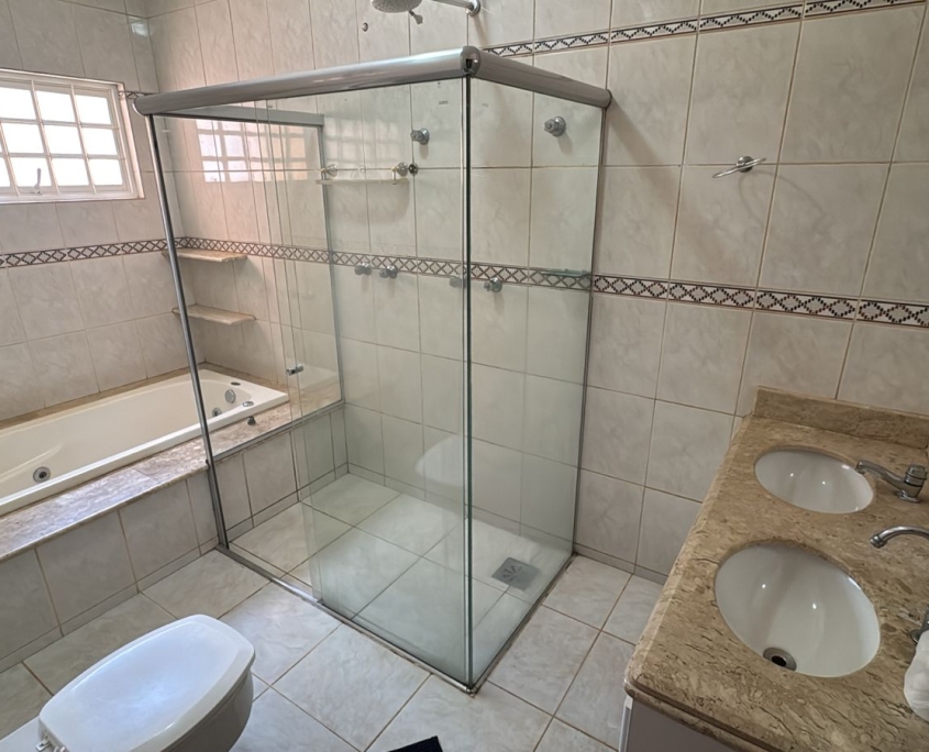 Casa de alto padrão, 3 quartos sendo 1 suíte, jacuzzi, closet, 1 banheiro social, sala de TV, cozinha completa, área de serviço com máquina de lavar, garagem para 2 carros. Equipada com camas forradas, geladeira, fogão, utensílios de cozinha, ventiladores em todos os quartos e internet Wi-Fi. Acomoda até 10 pessoas.